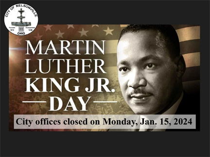 In observance of the Martin Luther King Jr. Day Holiday, all City offices will be closed on Monday, January 15, 2024. City offices will re-open for business on Tuesday, January 16, 2024, for regular business hours.